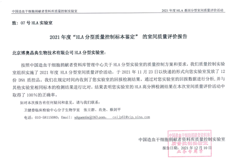 ? ? ? 博奧晶典HLA分型檢測實驗室自2006年正式為中華骨髓庫提供分型檢測服務起,至今已與骨髓庫合作超過15年,因出眾的質量優(yōu)勢、技術優(yōu)勢、服務優(yōu)勢,連續(xù)多年在骨髓庫組織的2%抽檢中取得100%準確率,并多次榮獲骨髓庫頒布的“先進實驗室”、“優(yōu)秀合作實驗室”等榮譽稱號。