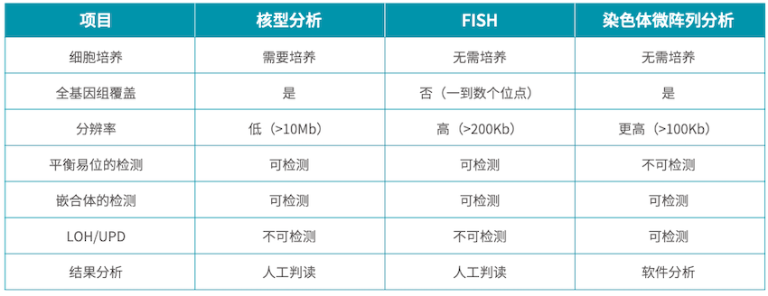 臨床常用細胞遺傳學(xué)診斷技術(shù)比較