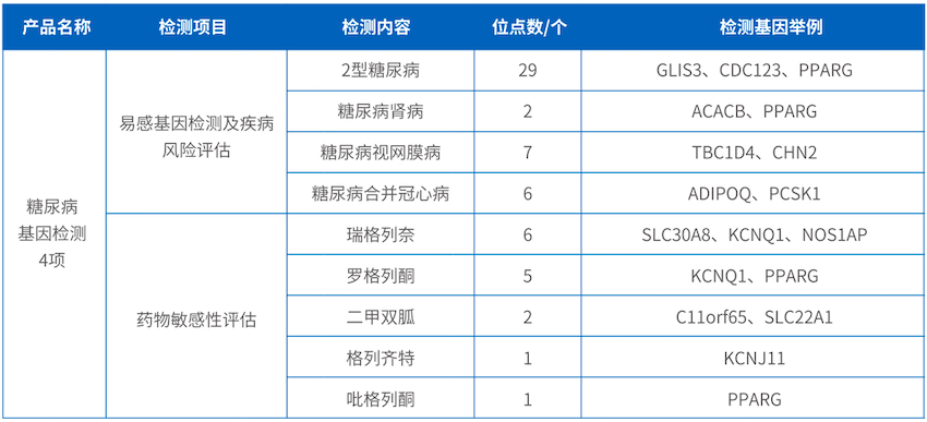 并且通過對瑞格列奈、羅格列酮、二甲雙胍、格列齊特、吡格列酮五種常見糖尿病治療藥物相關(guān)基因進行檢測,提高藥物的治療效果,避免藥物不良反應(yīng),為糖尿病疾病個性化用藥提供指導(dǎo)。