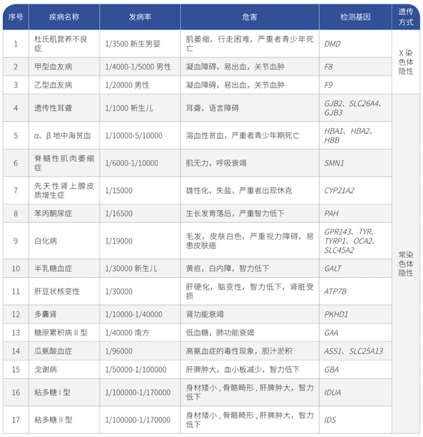 ? ? 我國每年新增90萬例出生缺陷兒,單基因病是導(dǎo)致新生兒出生缺陷的主要原因之一。OMIM數(shù)據(jù)庫(在線人類孟德爾遺傳數(shù)據(jù)庫)收錄的遺傳病約有7000種,其中發(fā)病機制明確的約有5000種,平均每個正常人攜帶2.8個隱性遺傳病致病突變。我國常見的單基因遺傳病有遺傳性耳聾、杜氏肌營養(yǎng)不良癥、地中海貧血、肝豆狀核變性、苯丙酮尿癥等17種,人群綜合攜帶率高達25%。這些疾病往往會致死或致畸,嚴重危害患者健康,給社會和家庭帶來極大負擔。