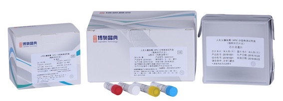 采用多重不對稱PCR結合通用芯片(Tag array)的技術對常見的HPV病毒進行檢測和分型。