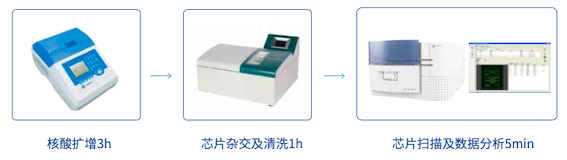 ASPUA是基于檢測基因突變的等位基因特異性PCR技術和通用微陣列芯片技術建立的。通過多重不對稱擴增獲得了大量的擴增產物,借助熱變性制備單鏈,最終通過與通用芯片雜交實現(xiàn)結果檢測。