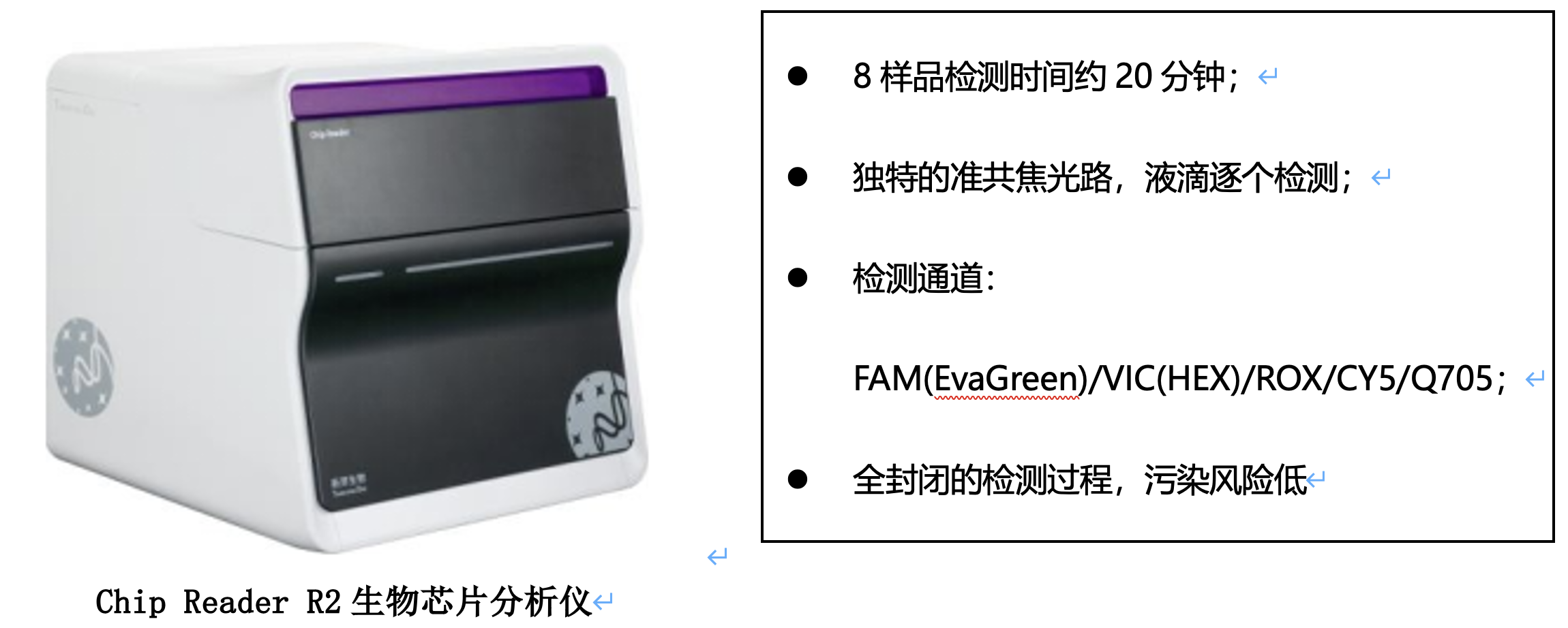 TD-2微滴式數(shù)字PCR系統(tǒng)包括: Drop Maker 樣本制備儀, Chip Reader 生物芯片分析儀,③配套通用 試劑和耗材,儀器平臺(tái)使用簡單,手工操作步驟少,整個(gè)反應(yīng)過程在封閉空間進(jìn)行,防止:PCR產(chǎn)物的污染,該系統(tǒng)適用于稀有突變檢測、拷貝數(shù)變異和基因相對表達(dá)領(lǐng)域的研究,可廣泛應(yīng)用于腫瘤、遺傳病、感染性疾病的診斷和研究。