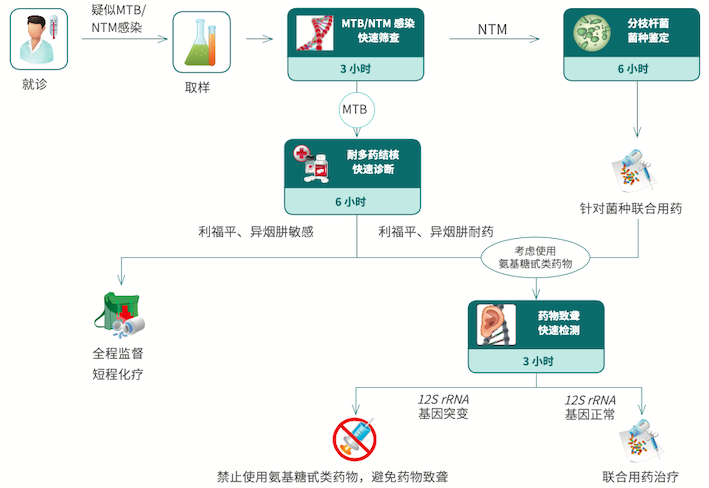 非結(jié)核分枝桿菌(NTM)與結(jié)核分枝桿菌(MTB)引發(fā)的疾病臨床表現(xiàn)十分相似,且NTM對結(jié)核病一線藥物異煙肼和利福平等的不敏感率達83.7%。感染早期,快速鑒定結(jié)核分枝桿菌和非結(jié)核分枝桿菌菌種,并制定針對性治療方案,對臨床治療意義重大。
