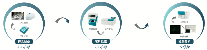采用基因芯片檢測技術,快速對兩種主要的一線抗結核藥物利福平和異煙肼的耐藥情況進行評估,進而實現(xiàn)對耐多藥結 核病的快速診斷。該試劑盒是國內第一個獲得CFDA 認證的耐多藥結核病快速診斷產品。