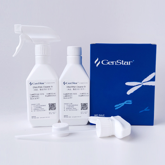 核酸(DNA/RNA)懸深顆粒,即氣溶膠污染物是導(dǎo)致 PCR 結(jié)果的假陽性原因之一。在分子生物學(xué)實(shí)驗(yàn)室中,核酸污染的清除是保證實(shí)驗(yàn)準(zhǔn)確性的有效措施。本產(chǎn)品由兩種單獨(dú)使用沒有毒性的溶液組成,混合后產(chǎn)生活性氧自由基,實(shí)現(xiàn)對(duì)核酸片段氧化降解,清除核酸(DNA/RNA)懸浮顆粒及物體表面核酸污染。本產(chǎn)品適用于生物實(shí)驗(yàn)室的清潔,通過對(duì)超凈臺(tái)面、實(shí)驗(yàn)墻面、移液槍外殼等污染累積的地方進(jìn)行噴涂擦拭,在短時(shí)間內(nèi)消除各種操作表面的高水平 DNA 及 RNA 污染,清除氣溶膠污染,消除細(xì)菌或病毒類污染。
