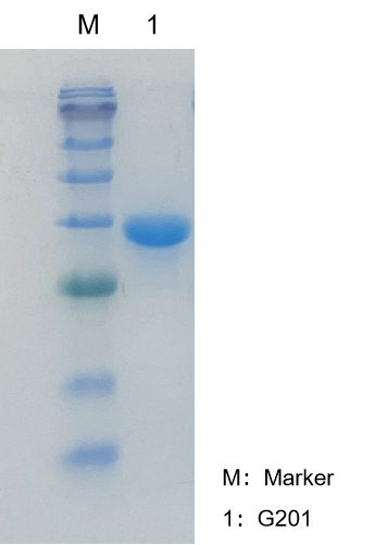 GenStar #G201 SDS-PAGE電泳結(jié)果顯示,除酶蛋白外無其它雜帶,純度>95%。