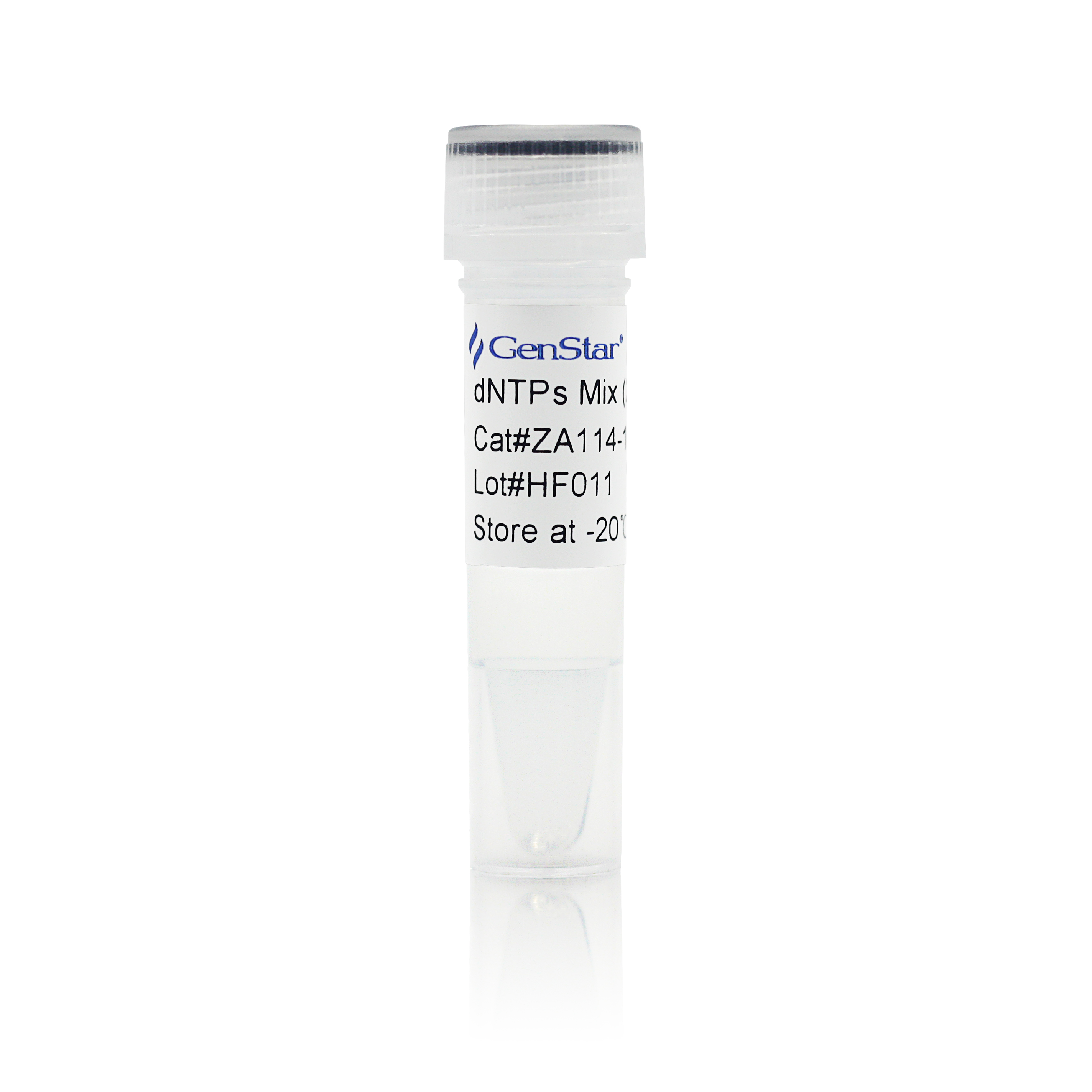 本品由等摩爾數(shù)的 dATP、dTTP、dGTP 和 dCTP 混合而成,適用于作為 PCR 反應(yīng)或其它 DNA 聚合酶的底物。每種 dNTP 的終濃度為 2.5 mM,純度 ≥98%。經(jīng)檢測(cè)無 DNA 酶和磷酸酶污染。