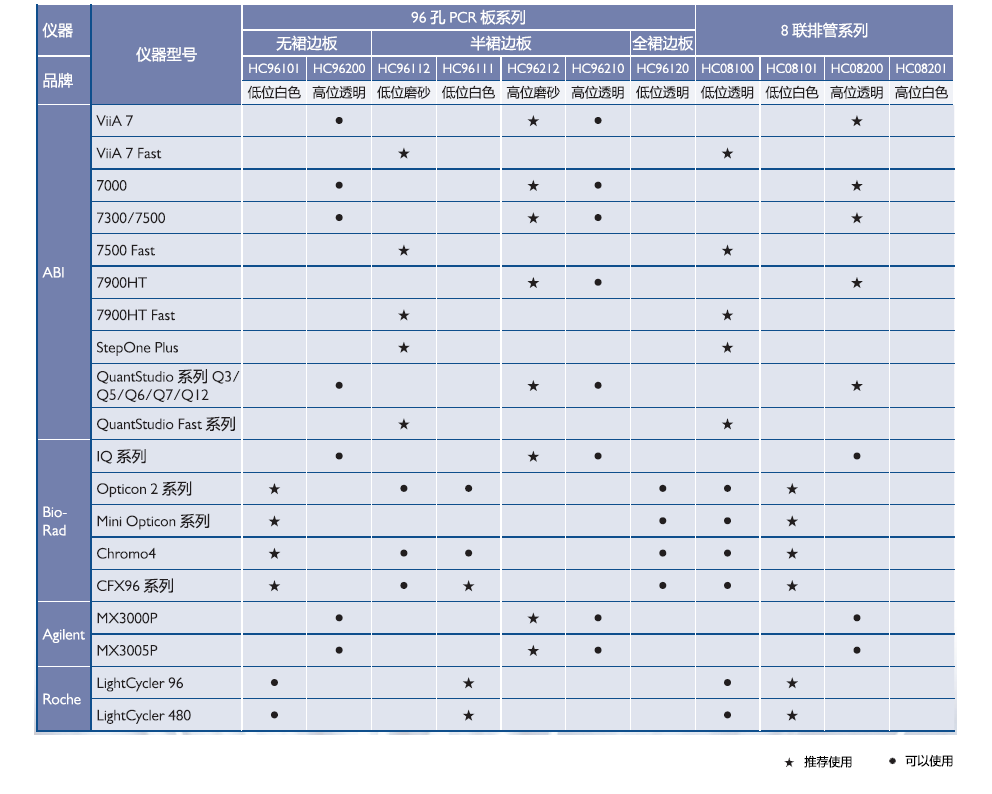 Bio-Rad 的 Opticon2 系列、Mini Opticon 系列、Chromo4、CFX96 系列;