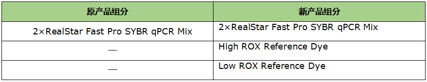 自 2024.08 起,該產品進行了組分優(yōu)化。優(yōu)化后的產品提供兩種濃度 ROX 參比染料即 High ROX Reference Dye 和 Low ROX Reference Dye,增加了產品適用性。