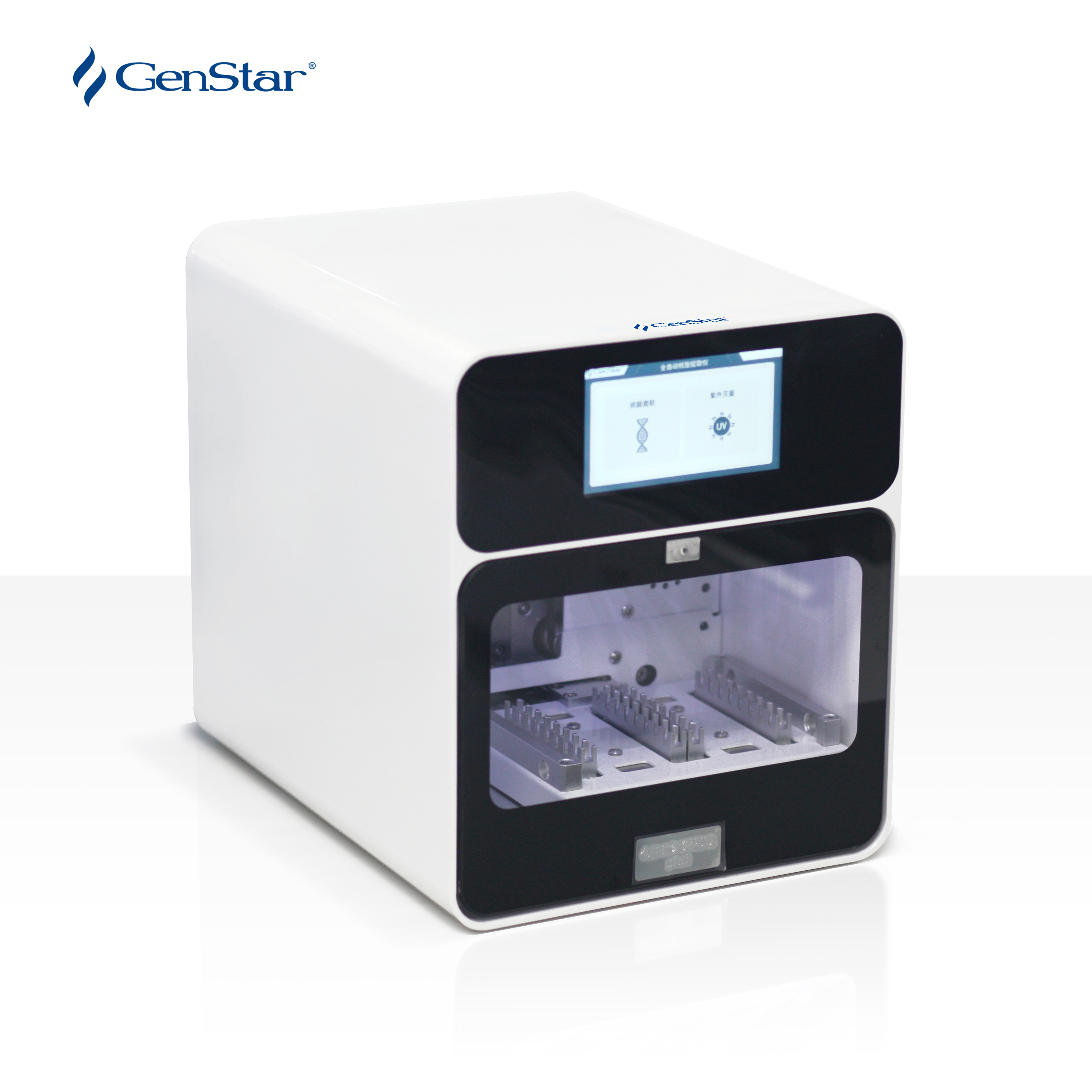 本產(chǎn)品利用套在磁棒外層的一次性磁棒套,反復(fù)快速地?cái)嚢枰后w,使液體與磁珠均勻混和。樣品在裂解液作用下裂解消化,RNA /DNA釋放到裂解液中,磁珠吸附 RNA/DNA。再利用實(shí)驗(yàn)艙磁棒架上的磁棒,將吸附核酸的磁珠移動(dòng)至不同的試劑孔內(nèi),經(jīng)洗滌液洗滌去除蛋白質(zhì)和其他雜質(zhì),經(jīng)乙醇溶液洗滌去除鹽分,最后經(jīng)低鹽緩沖液洗脫處理,得到高純度的RNA/DNA產(chǎn)物。 本儀器配套耗材為 2.2ml 96 孔深孔板,方孔,錐底,磨砂(GenStar#YH401)和 8 聯(lián)排磁棒套(GenStar#YH402),根據(jù)不同的樣本及實(shí)驗(yàn)?zāi)康?,選擇不同的提取試劑(GenStar#P333和GenStar#P334)。