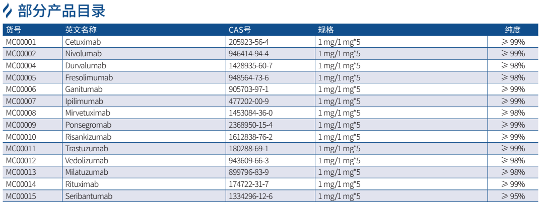 抗體抑制劑是一類能夠通過與特定抗原結(jié)合并阻斷其生物活性,從而抑制特定分子或細(xì)胞過程的抗體??贵w抑制劑具有與原始治療性抗體相同的活性生物成分,可作為陽性對照用于藥物效果評價(jià)等相關(guān)科學(xué)研究,同時(shí)也可以輔佐驗(yàn)證靶點(diǎn)蛋白的功能活性。GenStar 現(xiàn)提供數(shù)百種抗體抑制劑助力科研工作者,包括鼠源抗體、嵌合抗體、人源抗體、雙特異性抗體等,涉及一些熱門靶蛋白 PD-L1、PD-1、VEGF、EGFR、HER2、TNF-α、CD20、Claudin18.2、CTLA4、CD3、CD47、4-1BB 等。