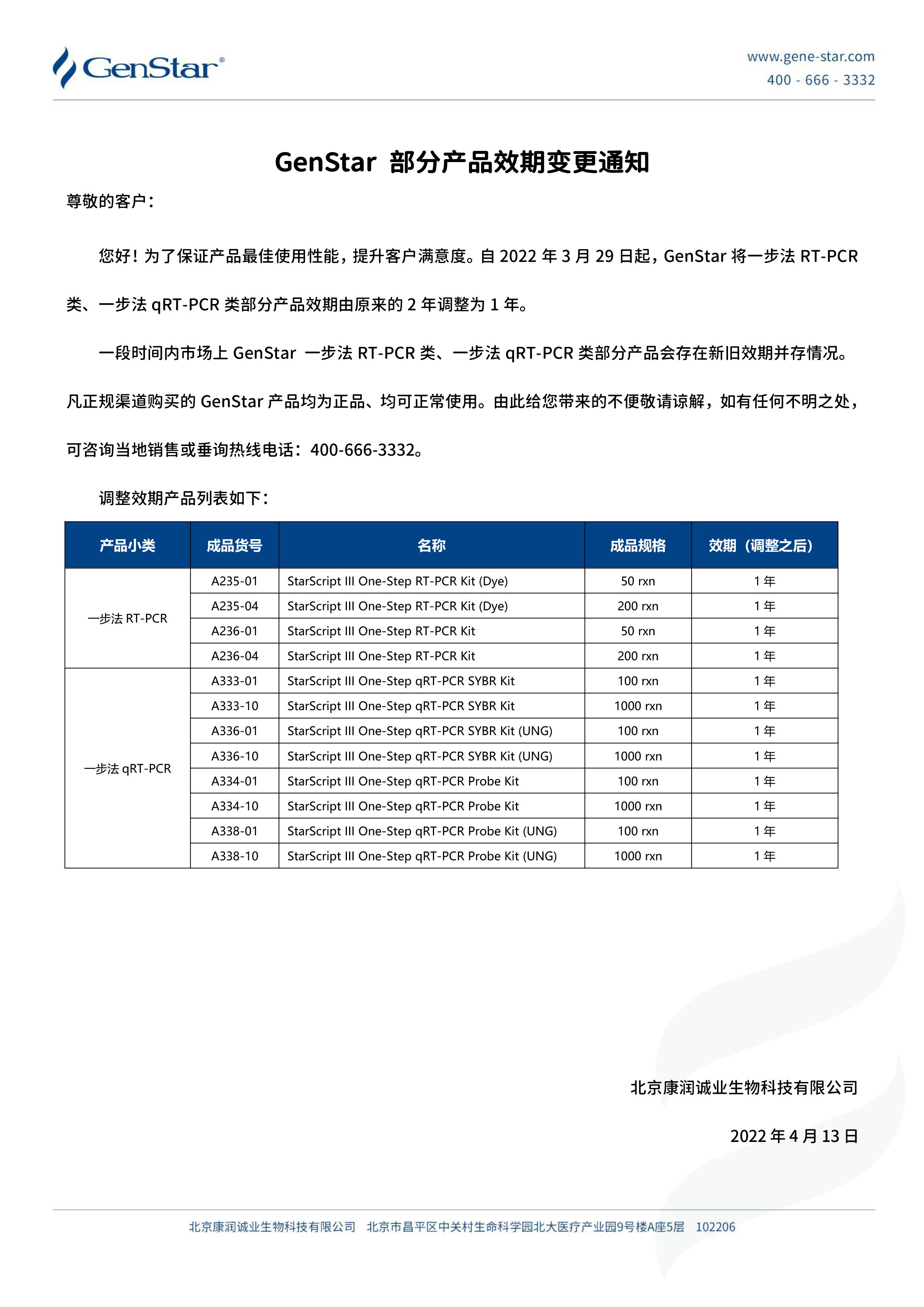 GenStar 部分產(chǎn)品效期變更通知